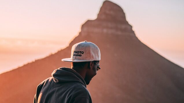 A man experiencing the view from table mountain with his camera, an essential item for your south africa packing list