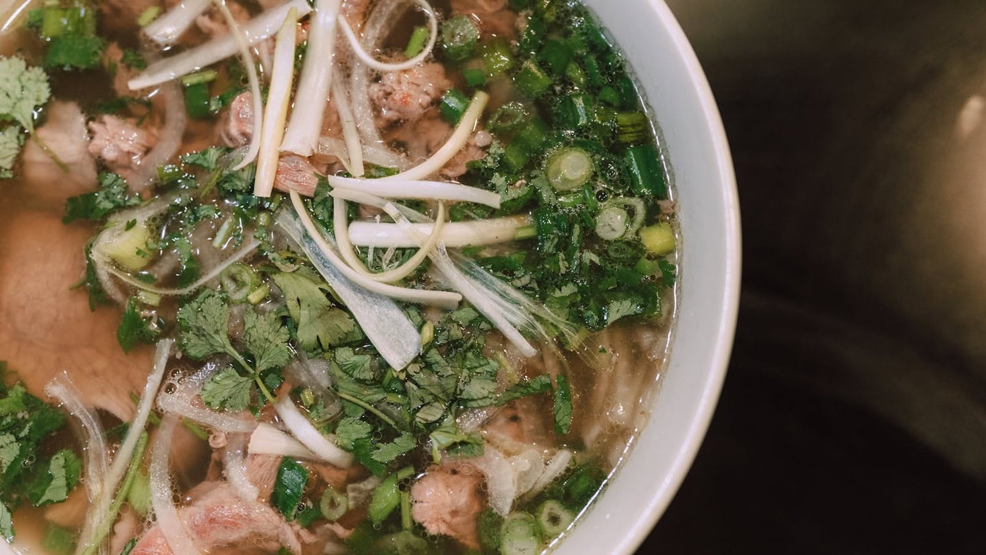 Pho is Vietnam’s pride and joy. This aromatic noodle soup features a slow-cooked beef broth seasoned with star anise, cinnamon, and clove. Add rice noodles, tender beef slices, and fresh herbs like Thai basil and cilantro, and you’ve got yourself a hug in a bowl. It’s the kind of soup that makes you slow down and savor.