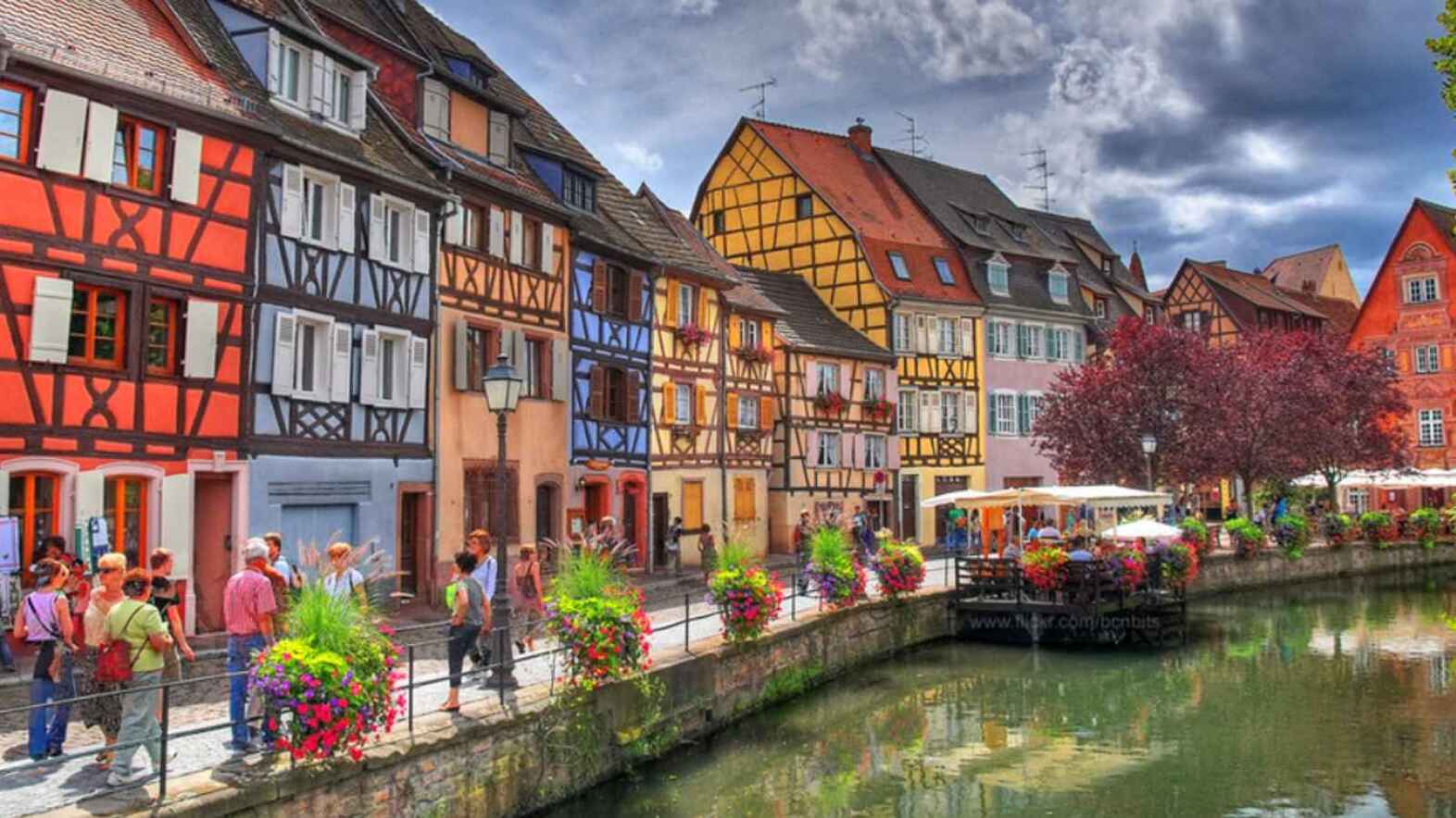 Colmar looks like a storybook brought to life with its colorful half-timbered houses along quaint canal routes. The town receives its “Little Venice” nickname from its flower-covered bridges that span the meandering waterways of the Alsace region.