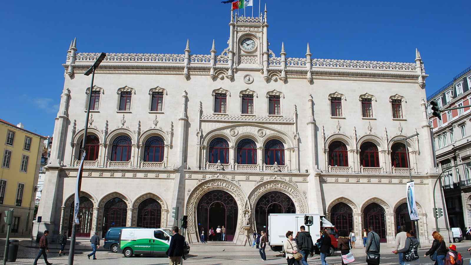 The entrance gates of Lisbon Rossio Station stand out because they consist of two famous horseshoe-shaped arches that define Neo-Manueline architecture. The platform tunnels were built underneath a hill through underground excavation, which shows exceptional engineering expertise.